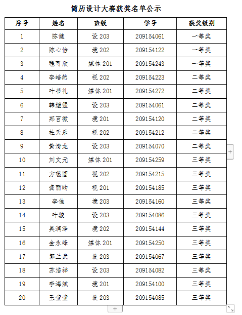 为了帮助学生提高个人职业素质,掌握制作优秀简历的技能,做好职业规划,增强就业优势,“草莓视频 2024届毕业生简历设计大赛”已经圆满结束。经综合评审后,简历制作环节共决出一等奖3名,二等奖6名,三等奖11名,现将获奖名单公示如下: