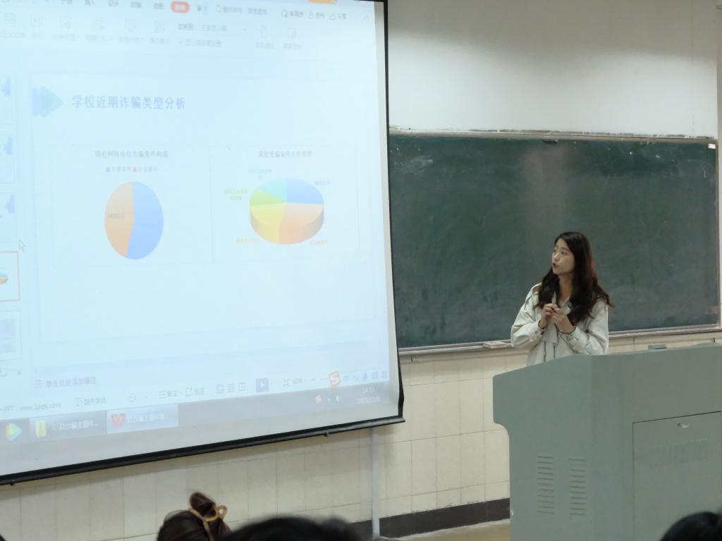 防范电信诈骗举措展开介绍,进一步细化防诈骗网格化管理,压实班委、防诈骗学生联系员及普通学生职责。会后,已被诈骗学生主动上台分享被骗经历,希望通过自己的教训提醒同学们提高警惕,不轻信、不转账,守好自己的钱袋子。