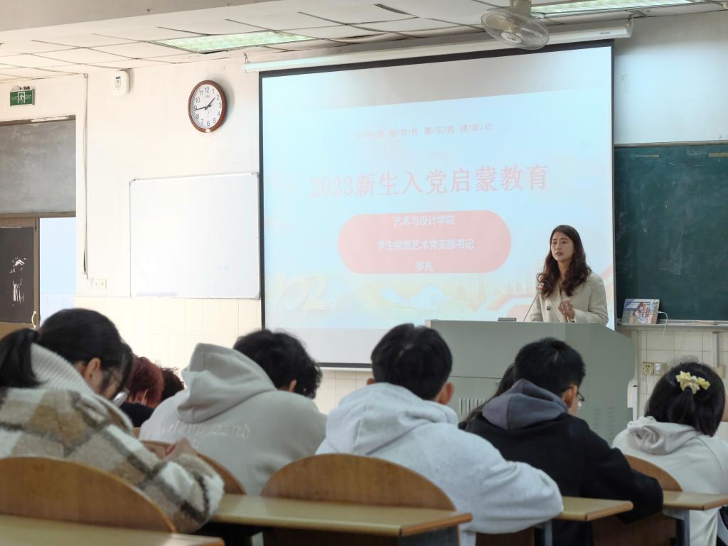 于11月20日在阶教101开展2023级新生入党启蒙教育,由学生视觉艺术党支部书记罗凡主讲,2023级全体团员参加。