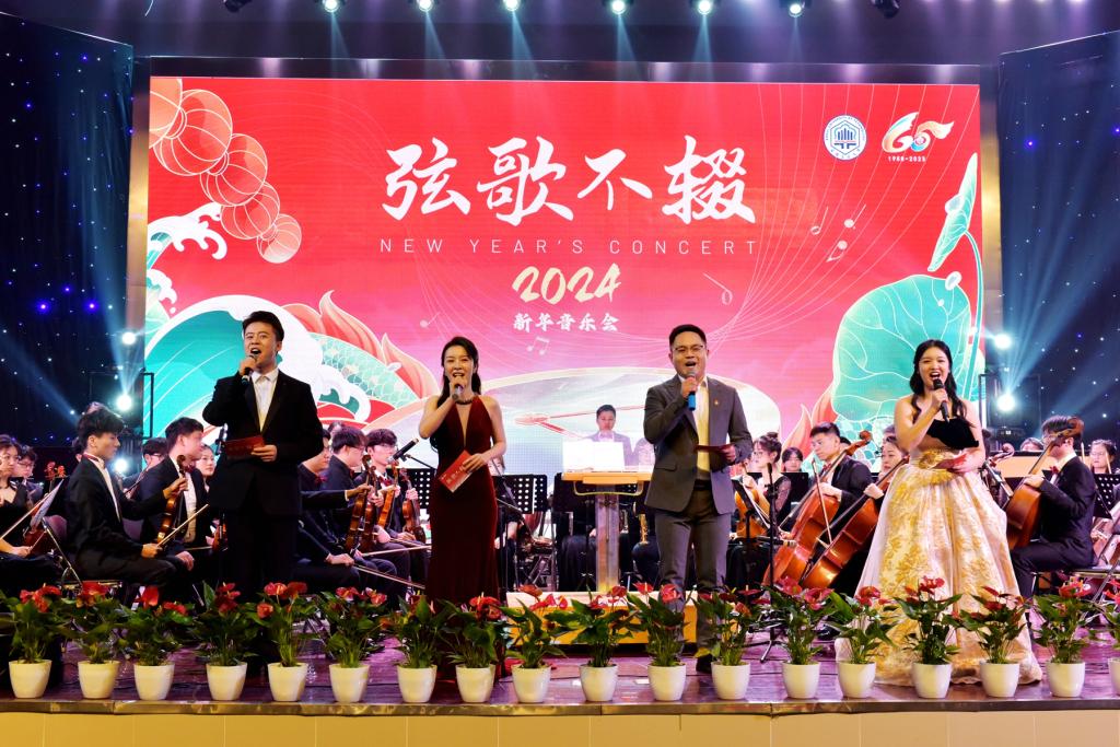 承办,党办校办、党委宣传(统战)部、团委协办的美育教学成果展暨“弦歌不辍”2024新年音乐会在秀山校区新大学生活动中心浓情上演。校党委书记陆林、校党委常委赵保平、校党委常委黄勇、马鞍山市公安局花山分局政委杨青、马鞍山市公安局雨山分局政委丁红华以及学校相关职能部门、学院党政负责人、获奖师生代表、优质生源基地师生代表共同观看了音乐会。