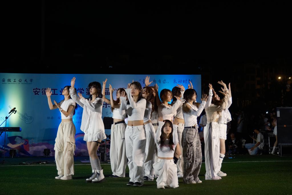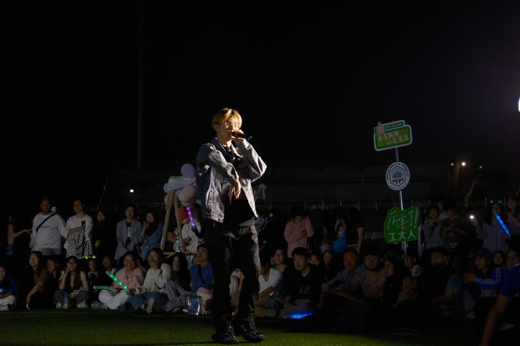 活动伊始,由校舞蹈社部分成员带来的女团舞《Yes!Ok!》用律动甜美的节奏瞬间点燃全场气氛,来往观众无一不被吸引。一舞结束,《美好的事能不能发生在我身上》、《还我蔚蓝》、《吉他与孤独与蓝色星球》、《只有音乐才是我的解药》以及《choose me》接力献唱,星空下的草坪仿佛变成了理想的花园。随后上演的舞蹈《GMIX》舞姿简约帅气,充满现代气息。夜幕渐渐昏沉,但表演的浪潮愈发热烈,模特协会的同学们踩着星光而来,《华韵》登场;说唱协会的同学们用一首首高质量原创歌曲引燃全场······观众围绕成圈,举着荧光棒高呼着,欢笑着,无论是老师还是学生,亦或是慕名而来的市民都被音乐节的狂热氛围所感染,情不自禁地摆动起来。霓虹灯投下的光影在人群间跳跃舞动,人们用丰富的律动与宇宙的频率相衬,表现出对生命、对青春的热爱。