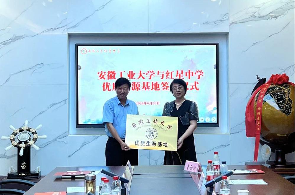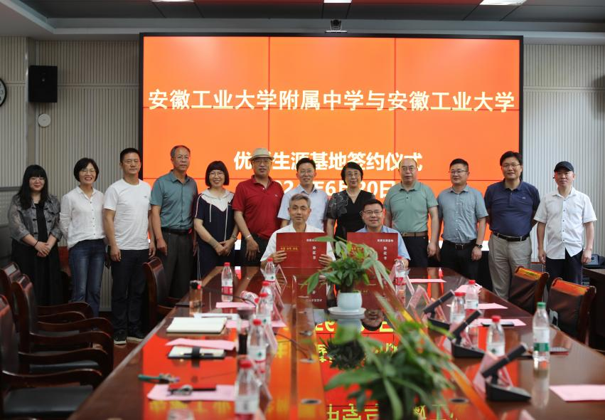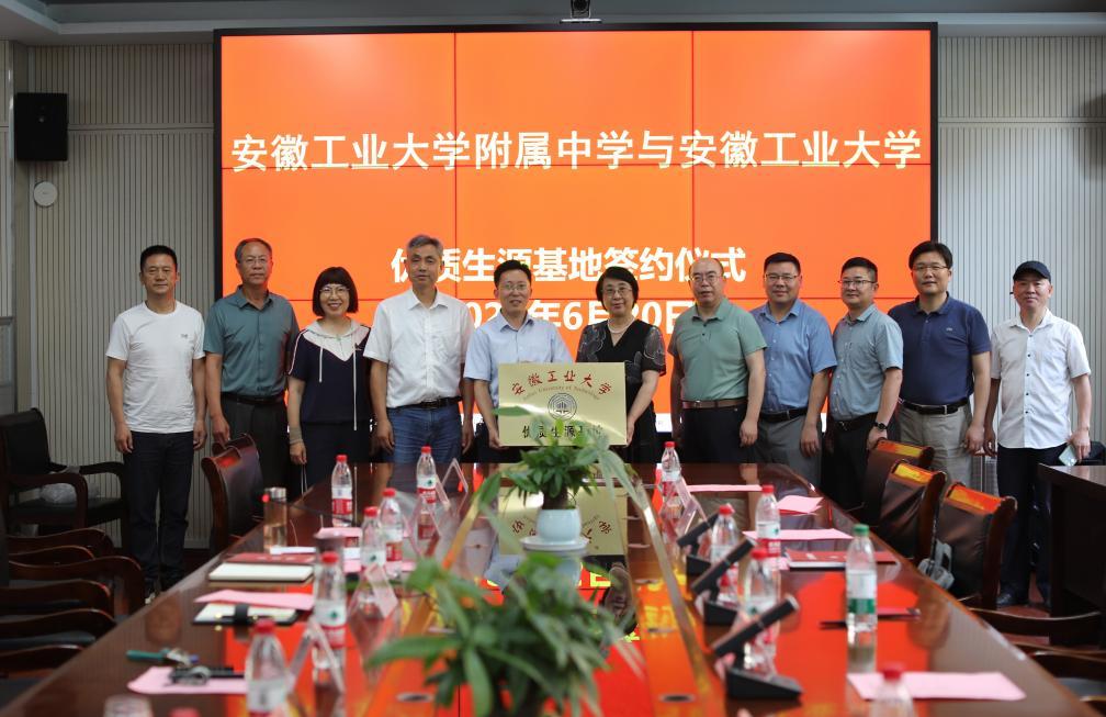 肖旺群红星中学和安工大附中负责人优质生源基地建设合作协议上签字。顾明言代表学校向红星中学和安工大附中授予了“优质生源基地”牌匾。