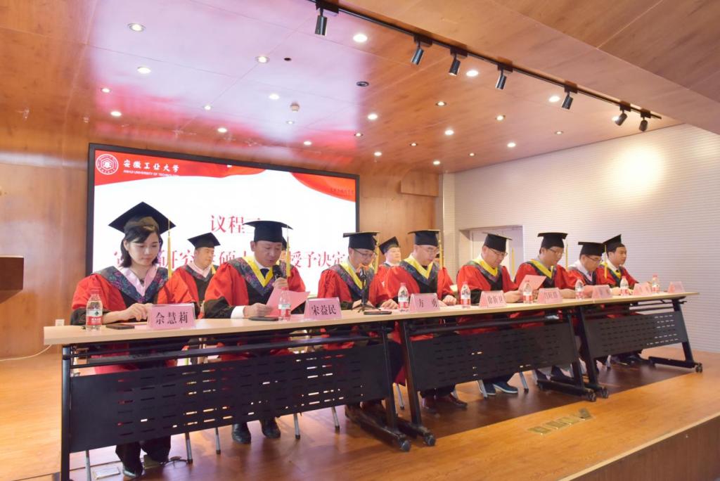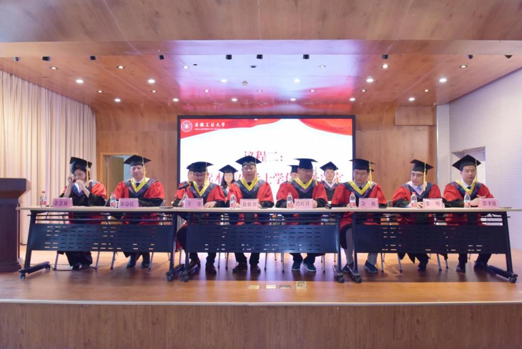 毕业生学位授予仪式在澎湃的国歌声中开始。副院长佘醒宣读学士学位授予决定,副院长宋益民宣读硕士学位授予决定。