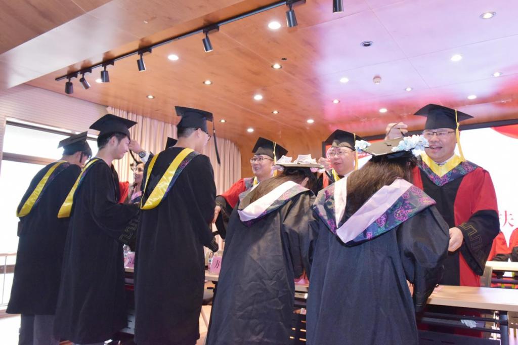 庄严的音乐声中,参会领导为2024届毕业生逐一拨穗正冠、颁发毕业证书、授予学位并合影留念。
