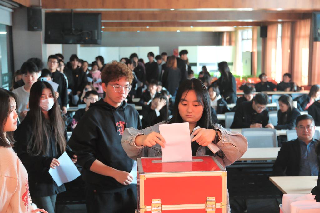 随后进行校学生代表大会代表选举工作。各学生代表根据候选人信息,秉持着认真负责的态度和公平公正的原则投出手中选票。经过票数清点与统计,共产生姜海信、乐月、王思慧等13位同学作为学校学生代表大会的代表。