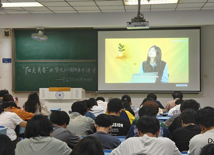于5月20日在教学楼南楼106教室组织学生集中收看2025“阳光青春”大学生心理健康大讲堂直播课程。本次活动吸引了来自不同年级的多名同学参与,大家齐聚一堂,共同学习心理健康知识,探讨AI时代下的心灵成长与自我提升。
