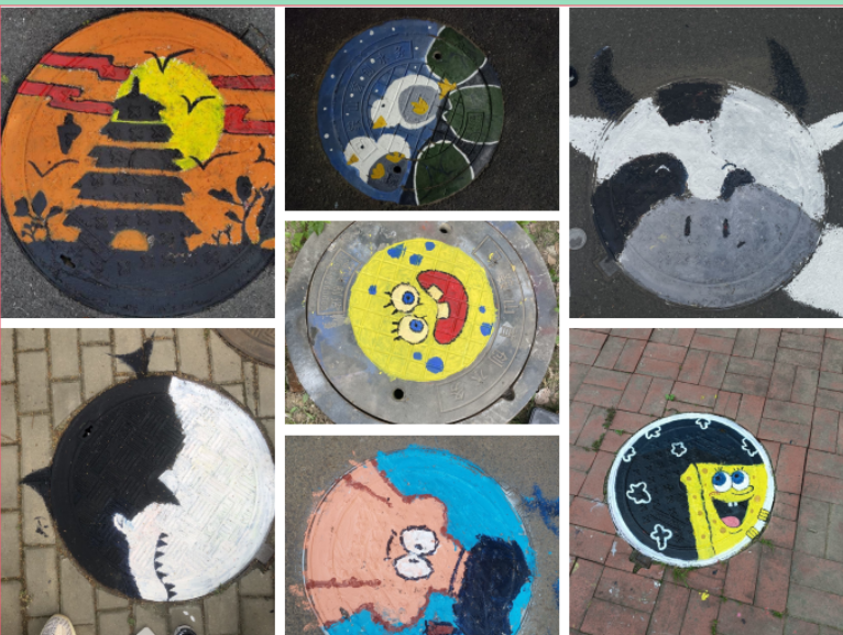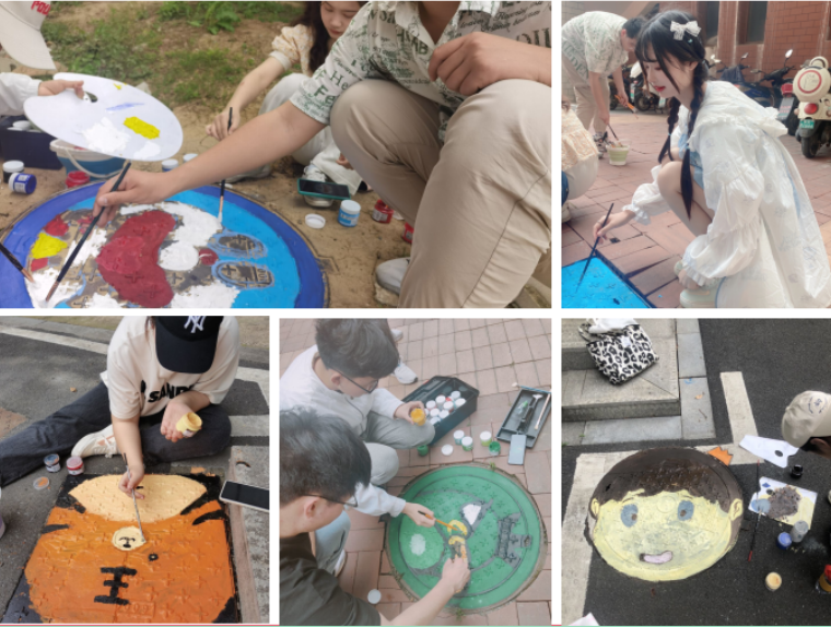 校园井盖美化劳动实践,用彩色涂鸦点缀校园