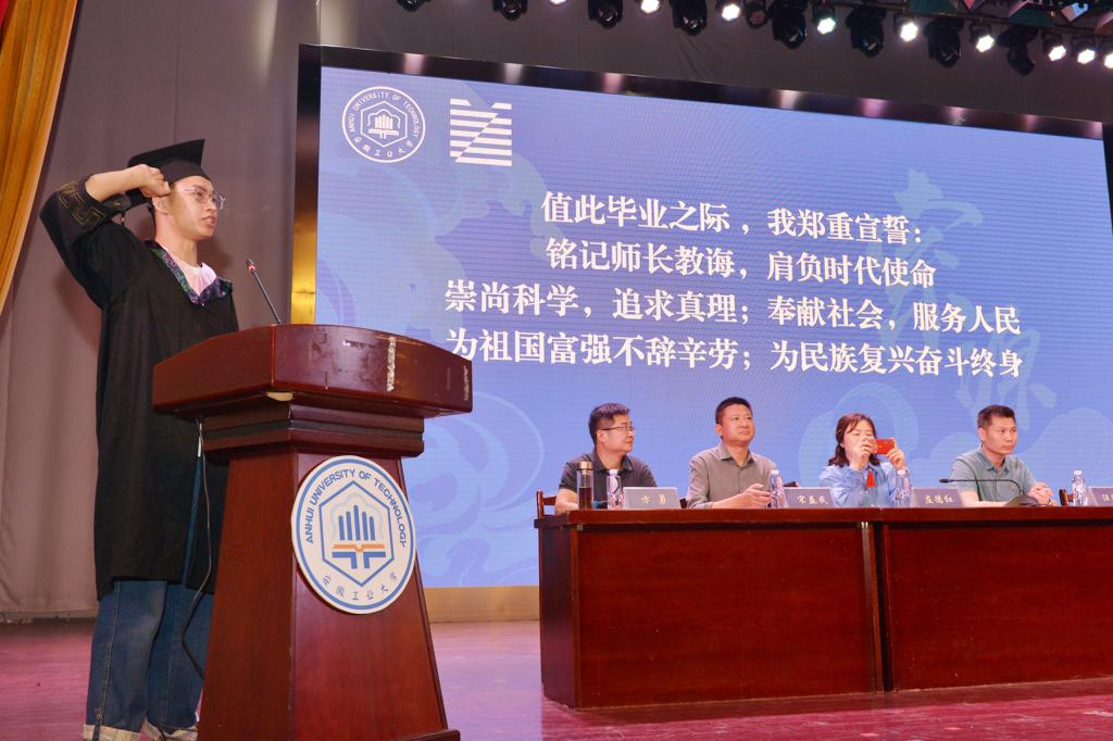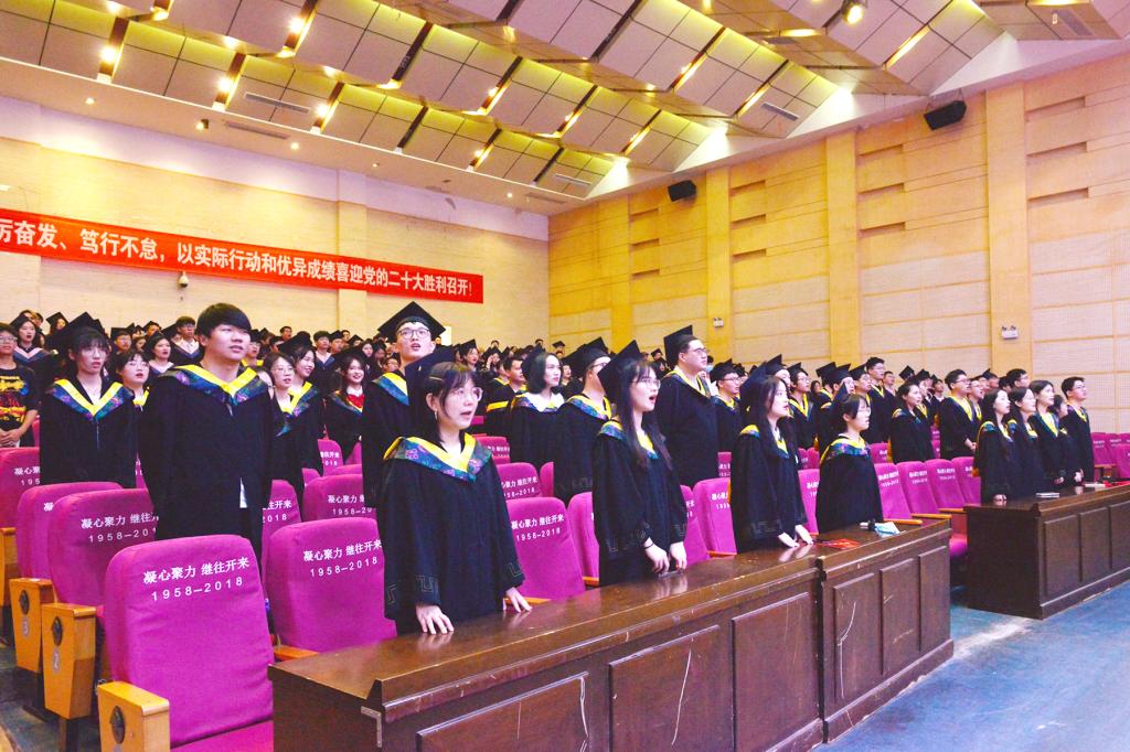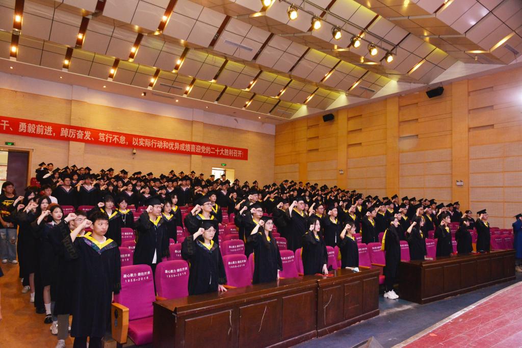 “铭记师长教诲,肩负时代使命;崇尚科学,追求真理;奉献社会,服务人民;为祖国富强不辞辛劳,为民族复兴奋斗终生!”全体毕业生集体宣誓,他们宣誓的铮铮言语,是坚定信念、不负时代的心声。