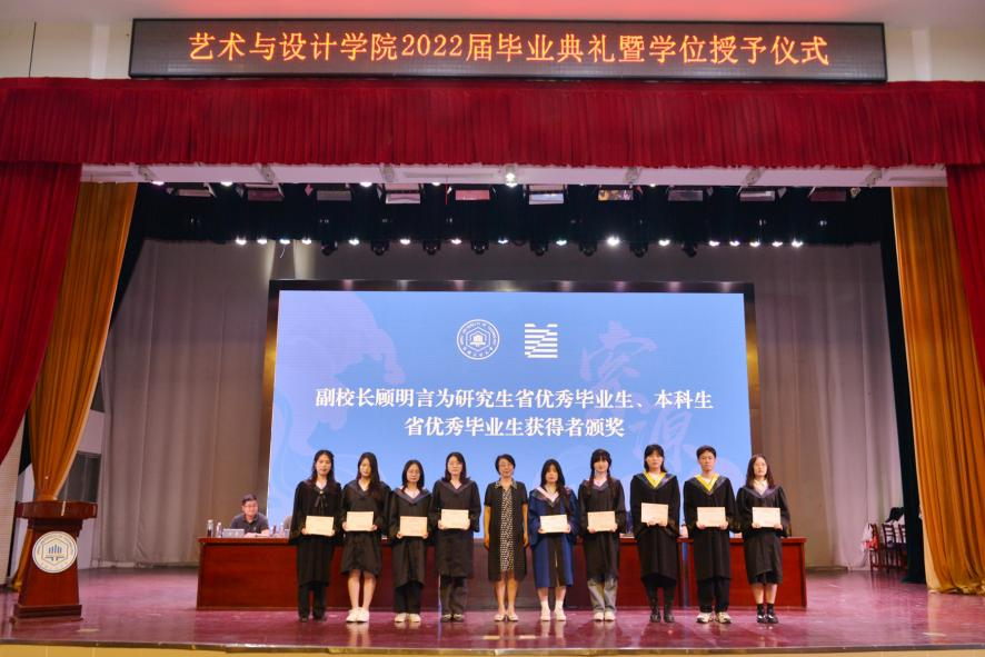 全体党政领导与全体师生向即将开启人生新阶段的毕业生们表示热烈的祝贺,向多年来辛勤工作在育人一线的全体教职工表示深深的敬意与衷心的感谢。同时指出,2022象征着圆满的轮回和美好的开始,走出校门,同学们将踏上中华民族开启实现第二个百年奋斗目标新征程的步伐。他以师长的名义,向同学们提出了两点希望:一是要坚守德行并重,谨记厚德方能致美,设计人修德,既要立意高远,又要立足平实,坚定设计初心,坚持真品创作,不断砥砺前行。二是要坚守知行合一,希望同学们未来对每件事,每一件作品都追求完美和极致,在点点滴滴中传承工匠精神,坚守知行合一,勤在事上磨练,能在静中体悟,做有“韧性”的设计人,要挑得起重担,负得起责任,经得住挫折。坚守为民初心,坚持“真善美”,积极进取,努力探索,精艺求新。