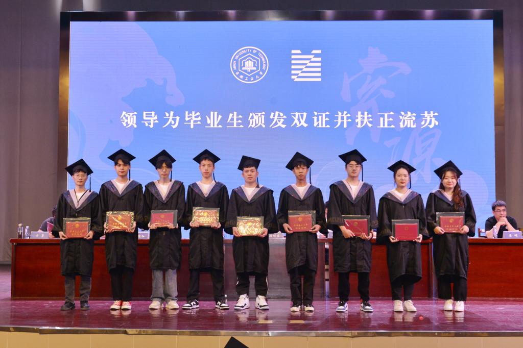 随后,典礼进行到最庄严的环节——学位授予仪式。参会领导为2022届毕业生逐一拨穗正冠、颁发毕业证书、授予学位并合影留念。