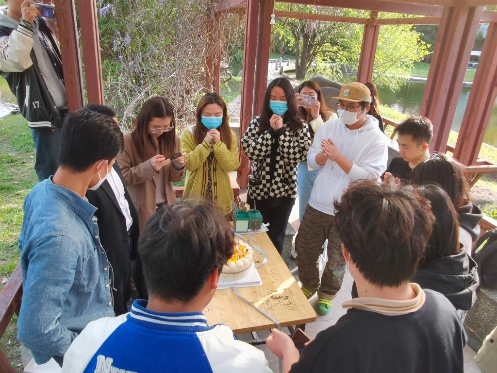 下午两点,荟灵湖中心的亭子中央响起了生日祝福歌,在“爱自己之生日祝福”线下活动中,全体辅导员为近期过生日的同学集体送上生日祝福。
