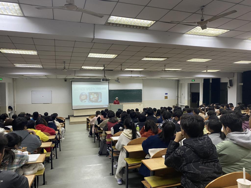 主动邀请了校后勤集团宿舍管理员代表王连华老师和同学们分享不一样的寝室卫生安全知识。王连华老师总结多年的工作经验,分别从违章用电的危害,后勤工作人员的辛苦,学生们从最初的不理解到毕业时发自肺腑的感激等方面带领同学们从一个全新的角度看待宿舍卫生管理。王连华老师以丰富的案例、深刻的亲身感受以及一个长辈的殷殷期待和同学们娓娓道来,直击学生们的心灵。整场交流同学们聚精会神,感触良多,他们以最真挚地掌声表达了对以王连华老师为代表的高校后勤工作者的感激之情。