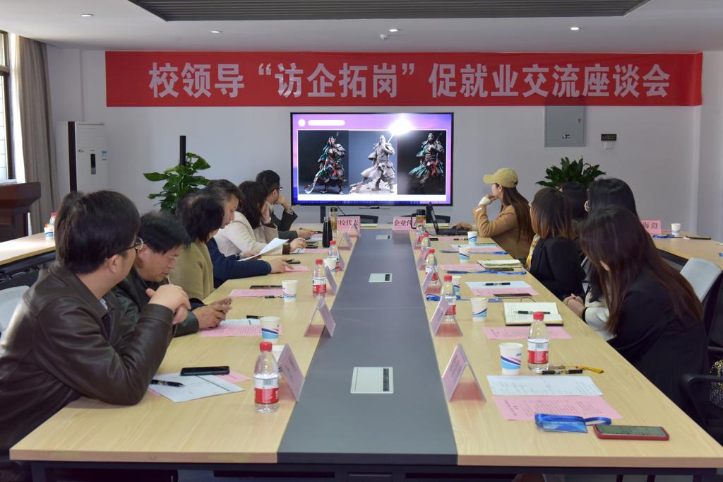“访企拓岗”促就业交流座谈会。滁州东菱电器有限公司、上海拜伦文化传媒有限公司、马鞍山众空间装饰设计有限公司、马鞍山源创装饰工程设计有限公司、南京易技未来动画制作有限公司人力资源部负责人以及草莓视频