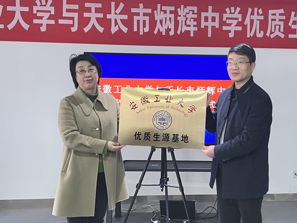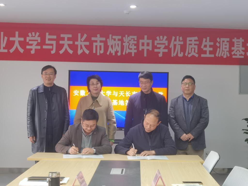 党委副书记方勇和炳辉中学党委副书记郭少林共同在优质生源基地建设合作协议上签字。顾明言副校长代表学校向天长市炳辉中学授予了“优质生源基地”牌匾。 (撰稿:秦艳秋 审核:罗凡 汪正 方勇)