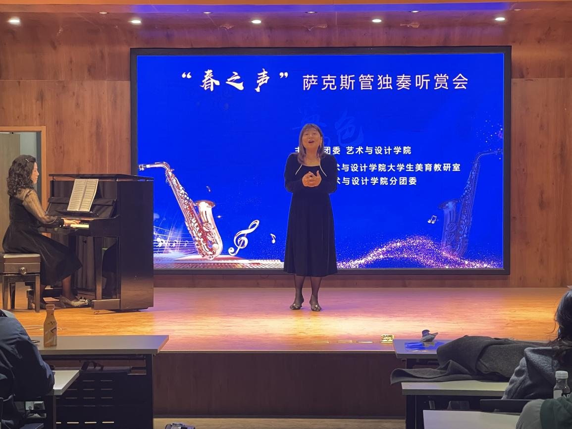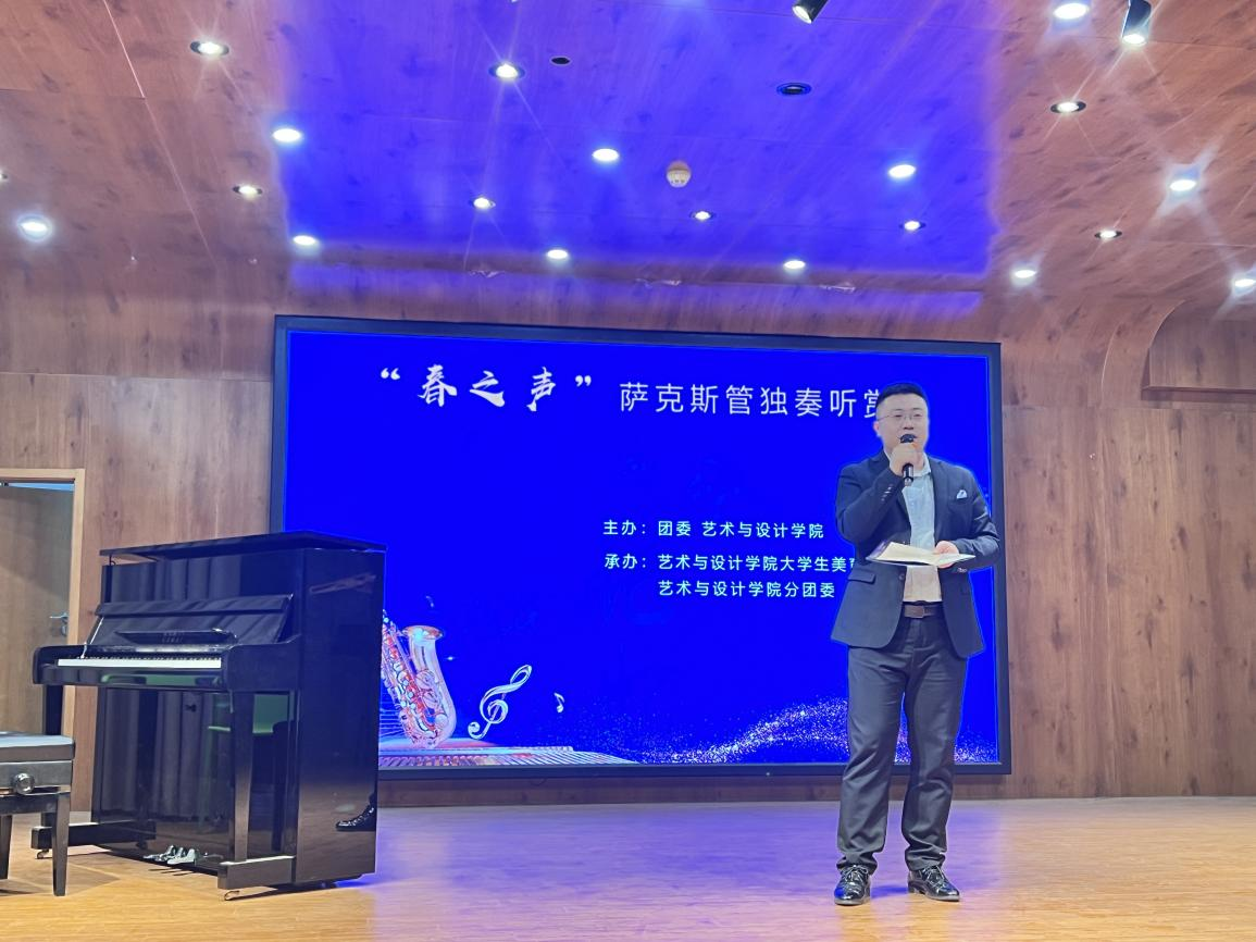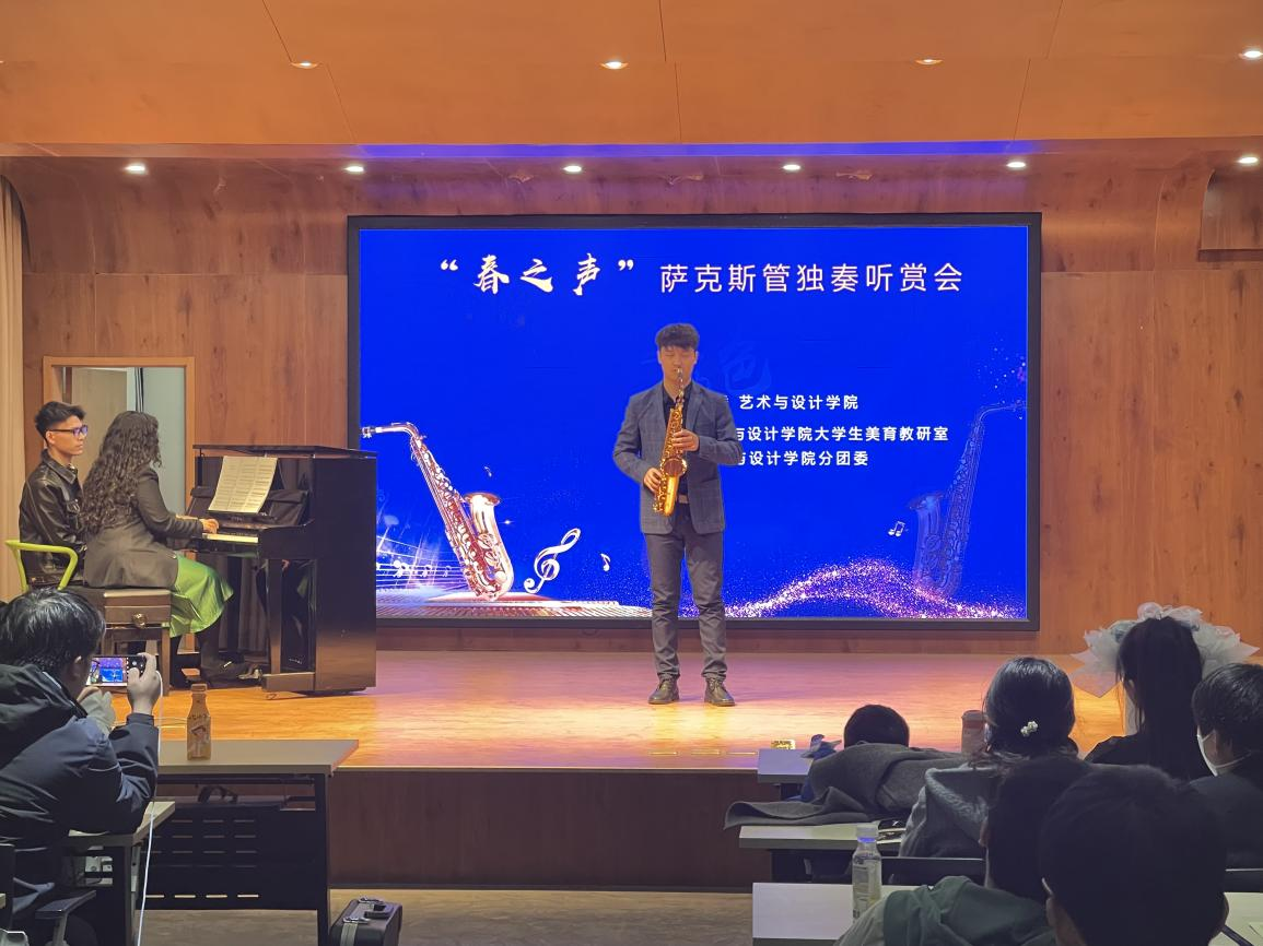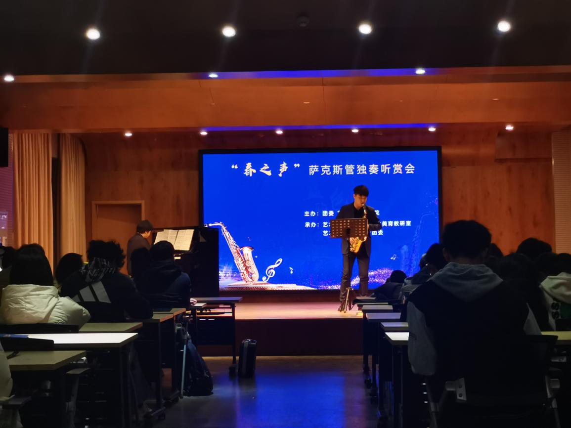 3月5日,学校举办“春之声”萨克斯管独奏听赏会。活动由校团委、艺设学院共同主办,美育教研室承办。艺设学院负责人、师生代表与全校音乐爱好者们共赏视听盛宴。