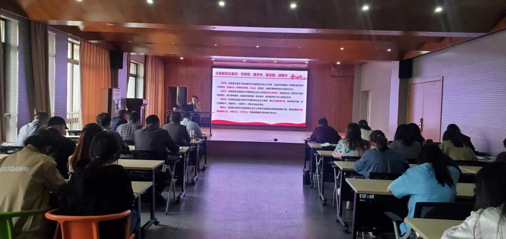 举办主题教育专题报告会,马克思主义学院副院长宫晓虹副教授应邀作辅导报告,学院全体师生党员参加了报告会。