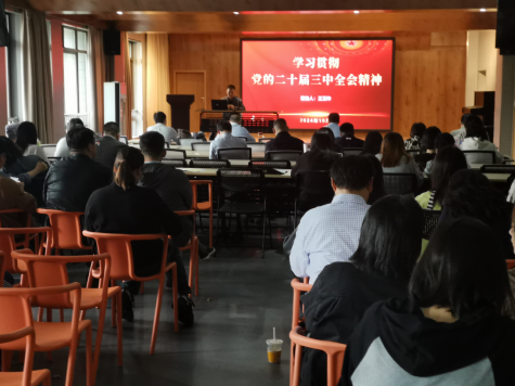 在艺设楼401举办学习贯彻党的二十届三中全会精神宣讲会,邀请学校党的二十届三中全会精神思政教师宣讲团成员、马克思主义学院王玉坤老师主讲。宣讲会由院党委书记徐新卫主持,学院全体教职工、学生党支部支委参加了宣讲会。