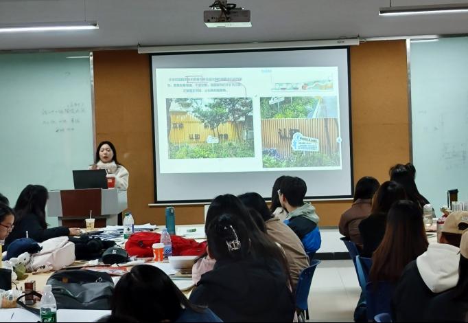 公共环境艺术系倪妮老师的《景观设计》观摩课现场。倪妮以“目标导向、过程驱动、多元评价、思政领航”理念,多维度地展现了“引”发思考,“作”育巧匠,“炼”造真知,“展”示风采,“例”证真理,“赛”促超越的景观艺术创作智慧。