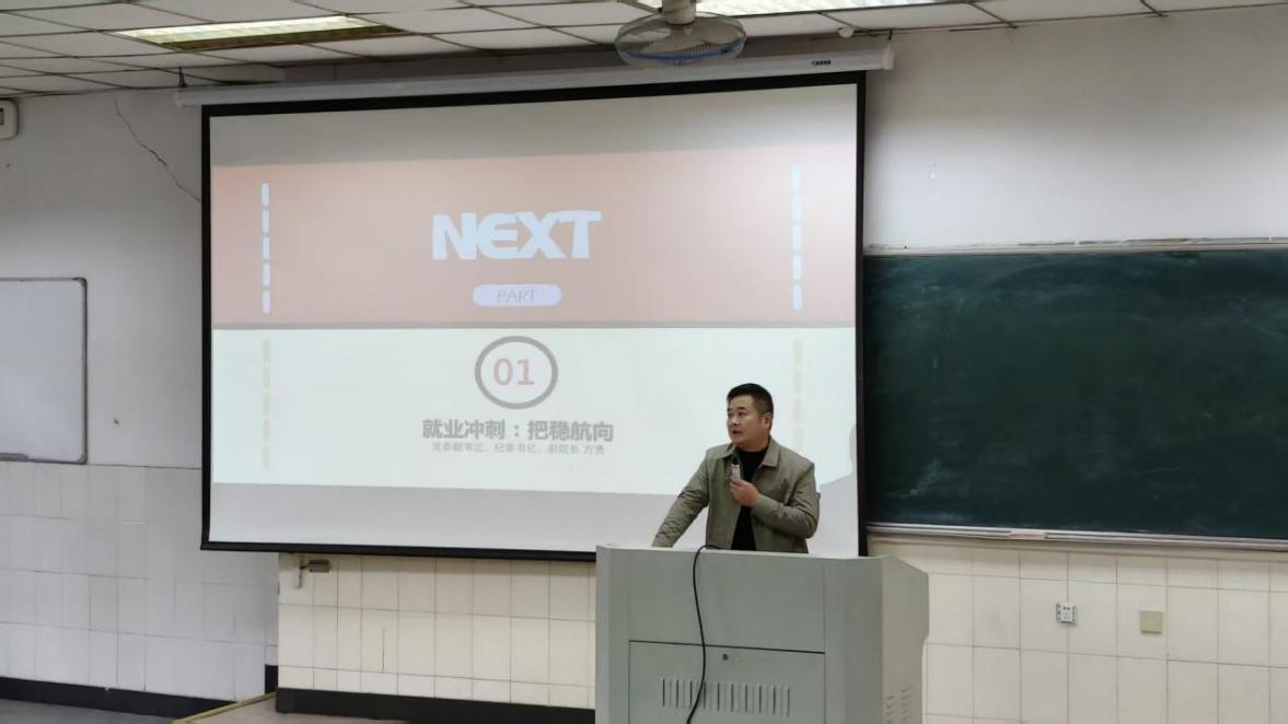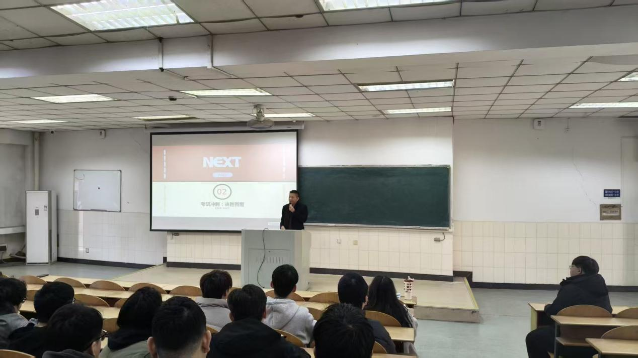 副院长宋益民则针对考研学生进行“考研冲刺:决胜百里”主题动员。他引用“行百里者半九十”勉励学子,在考前最后阶段保持心态稳定、专注细节。宋益民建议同学们回归知识体系梳理,注重劳逸结合,保持身心健康,以最佳状态迎接考试。