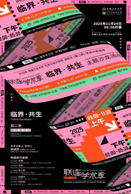 11 月 29 日,艺设学院成功举办 “临界・共生” 第二季研究生论坛。本次论坛聚焦技术、社会、环境多重变革交织的当下,“临界”既暗藏挑战,亦孕育新机;“共生”则指明艺术与设计的发展方向 —— 寻求人、技术、自然与社会的和谐共生。活动以该主题为核心,鼓励探索边缘与交汇地带的创新可能,在新质生产力为艺术设计提供创新驱动力与技术支撑的背景下,搭建起思想交流、智慧碰撞的学术平台。