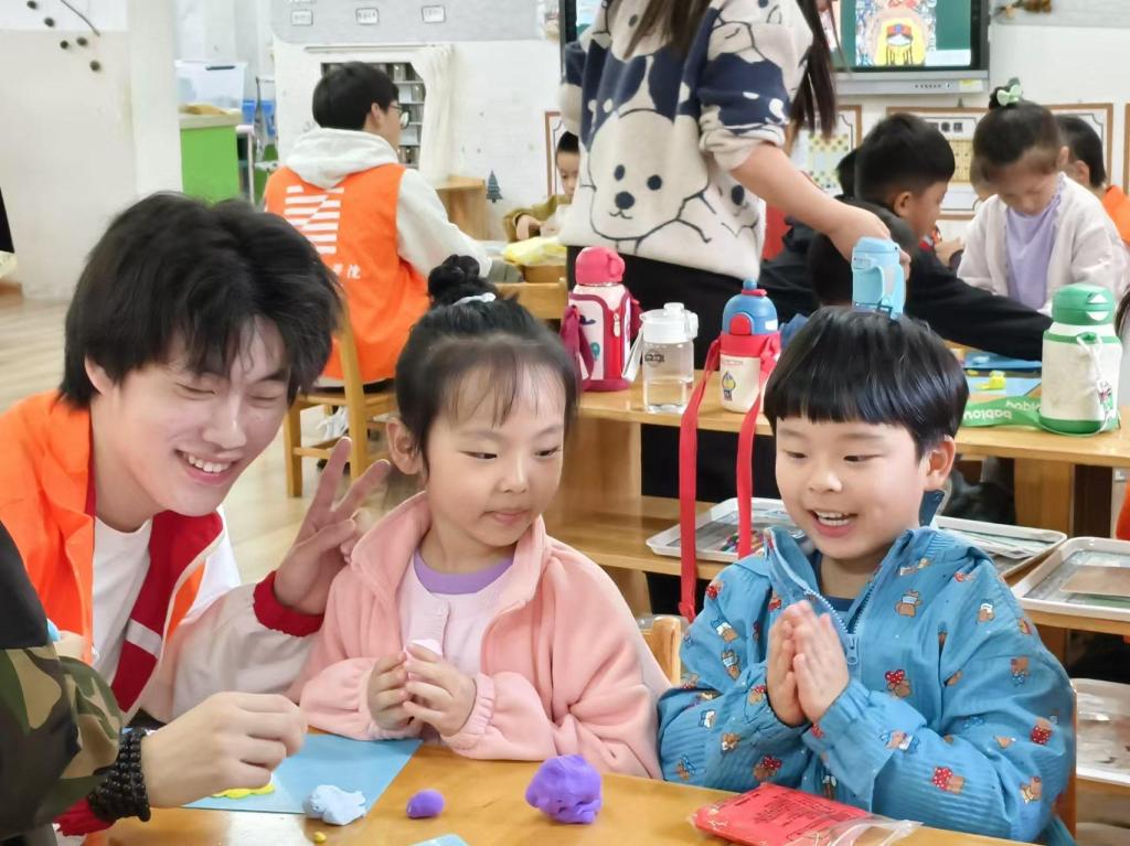 为发扬志愿服务精神,增强社会美育氛围,帮助幼儿提高发现美、欣赏美、创造美的能力,草莓视频 青年志愿者协会于10月24日赴安工大附属幼儿园开展“童画校园”艺术教学志愿活动。