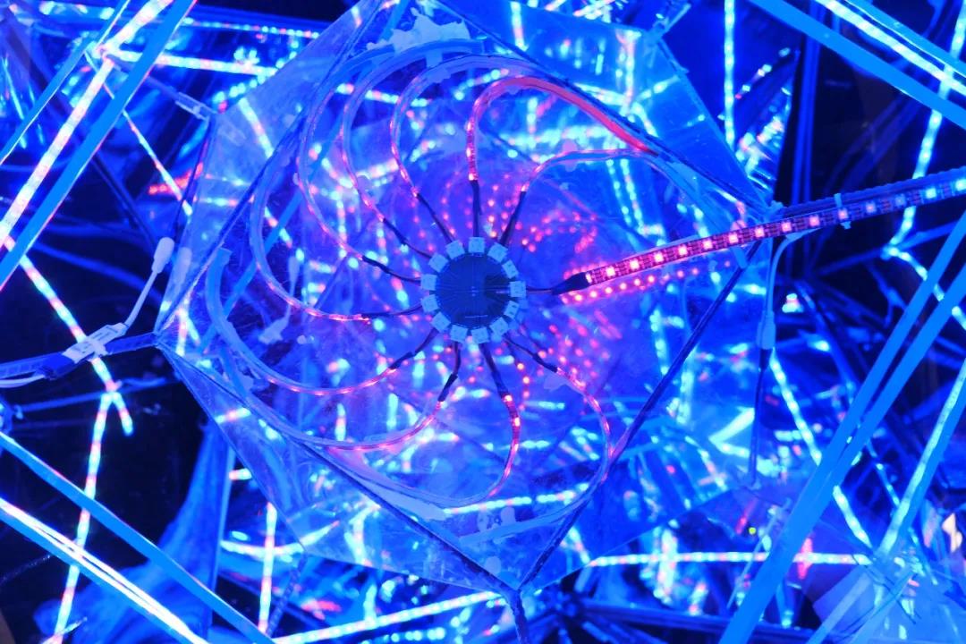 设计说明:作品意在探讨一种“镜像关系”,主体部分是由镜面和多条灯带构成的一个新媒体互动装置,由此呈现出一个向内无限延伸的镜内空间:在一个蓝色的密闭空间内获得沉浸式的体验,让人在观赏中开始思考,从而获得一种深层次的体验感及启迪。