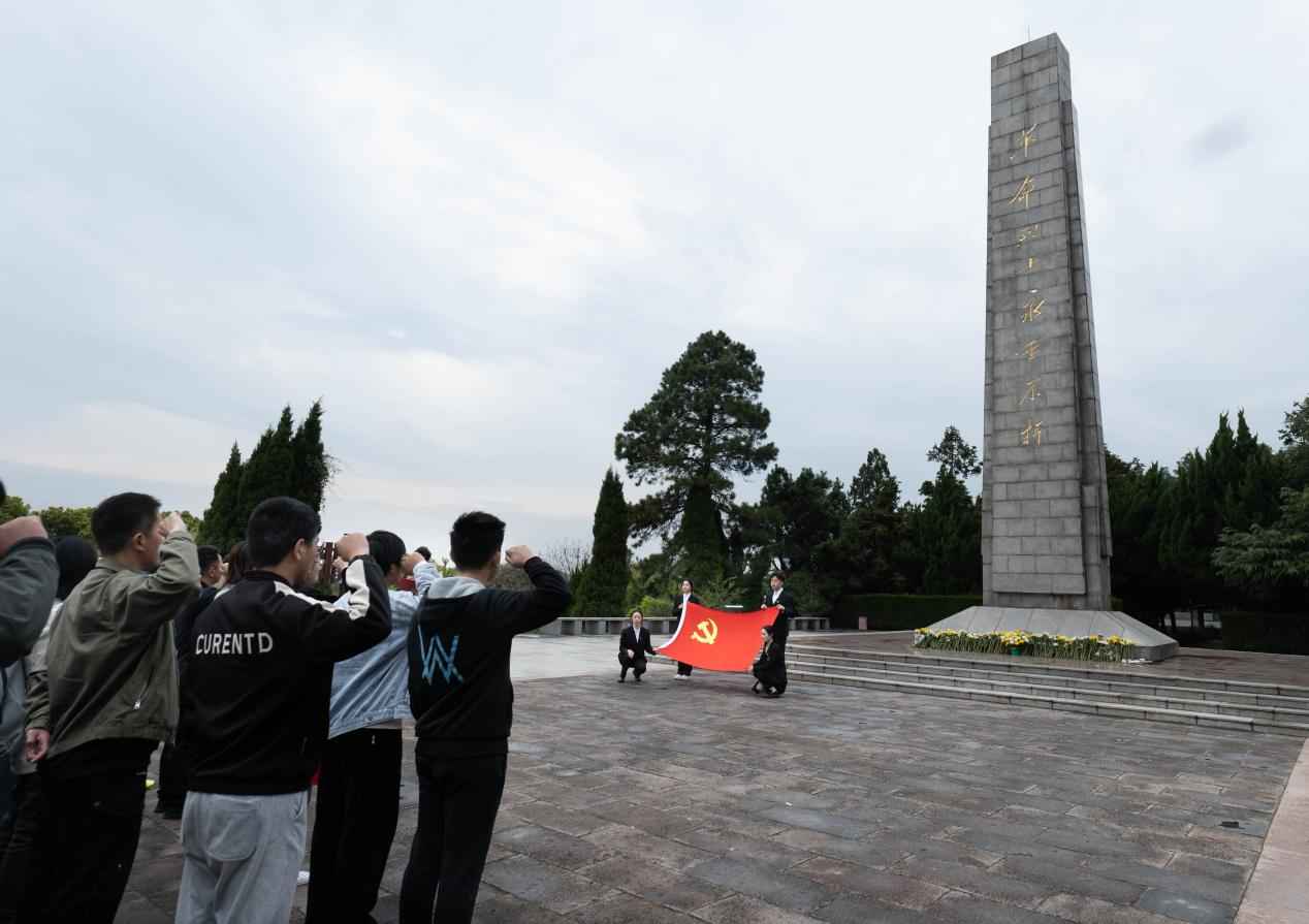 活动最后,师生代表前往瞻仰革命烈士纪念碑,并重温入团、入党誓词,向革命先烈们作出郑重承诺,胸前的徽章熠熠生辉。随后学生代表在纪念碑下分享革命烈士英勇事迹,交流学习心得感悟,其中不乏无数少年英雄事迹。一个个稚气未脱的少年,他们的理想、他们的血泪洒满了这片他们爱得深沉的土地,开出一朵朵青春的、无悔的、熠熠生辉的人生之花。