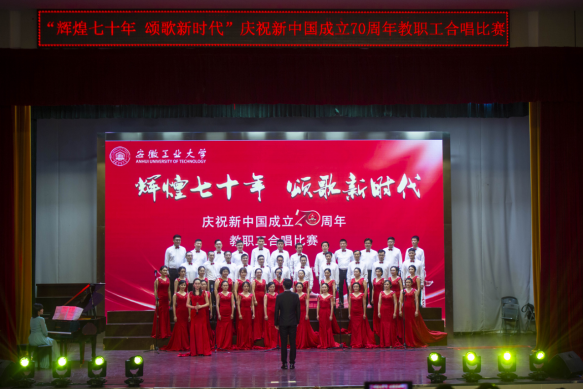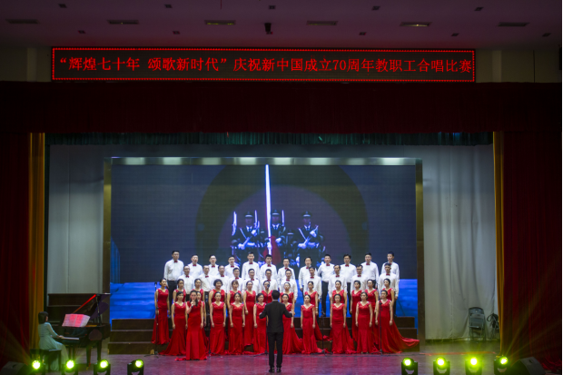 9月26日晚,秀山校区大学生活动中心现场歌声飞扬,曲声激荡。“辉煌七十年,颂歌新时代”庆祝新中国成立70周年教职工合唱比赛在这里精彩上演。本次比赛由校工会、党委组织部和党委宣传部联合主办,校团委协办,来自全校各基层分工会组成的21支合唱队1000多名教职员工齐声歌唱,祝福伟大的祖国。