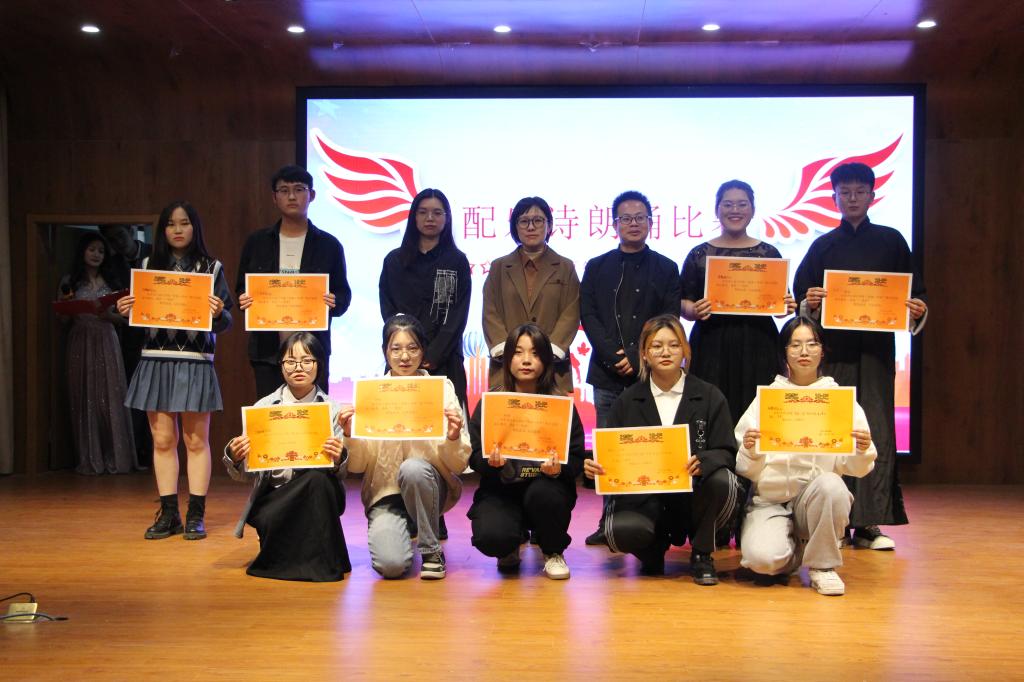 在艺设楼401举办了第十一届“青春·华章”配乐诗朗诵大赛,来自大一各班级的九支队伍参加了比赛,各年级辅导员和学生会干部担任评委。