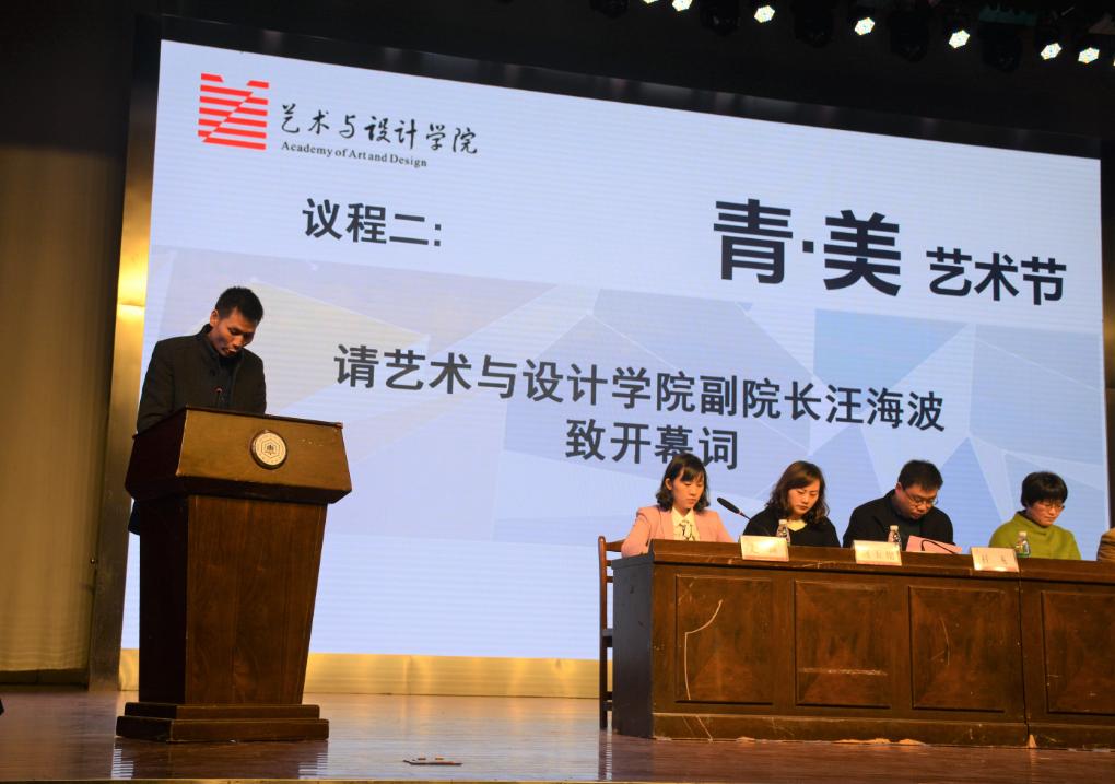 开幕式在隆重的国歌声中拉开帷幕,首先由草莓视频 副院长汪海波致开幕词,随后由党委副书记、副院长赵玉艳宣读第四届“青·美艺术节”方案,草莓视频 校团委副书记杜飞致贺辞,教师代表、学生代表分别发言。最后,院党委书记王薇宣布艺术节开幕,并邀请市美术家协会副主席刘钢一同启动开幕球。