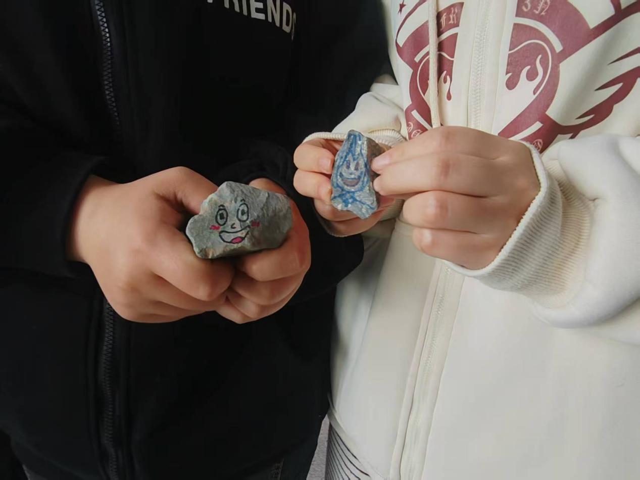 活动伊始,指导老师通过“情绪关键词”互动游戏引导参与者觉察自身情绪状态。随后,同学们老师指导下,挑选形状各异的石头为画布,用丙烯颜料自由创作。有的学生将焦虑化为扭曲的线条,有的用明艳色彩描绘希望,还有人写下鼓励自己的话语。“我最近学业压力很大,在绘制石头的过程中,我全身心投入,感觉所有的烦恼都暂时抛到了脑后。而且看到自己亲手绘制出这么漂亮的作品,特别有成就感,心情一下子就变好了。”一位参与活动的同学兴奋地分享道。
