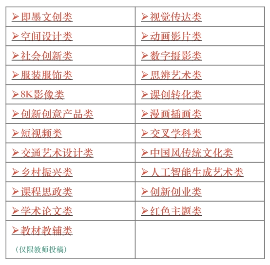(本届大赛共设23个投稿类别,每个二级学院(系),每个类别最多投搞20件作品)
