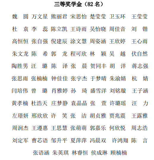 根据《草莓视频 本专科生评奖评优实施办法》(安工大[2021]71 号)文件精神和《学生手册》的相关规定,综合学分绩、第二课堂等方面,经个人申请,班级评议和学院审核,经学院党政联席会议研究决定,拟推荐韩继强等164名同学获得2022-2023 学年本科生优秀学生奖学金,具体公示情况如下: