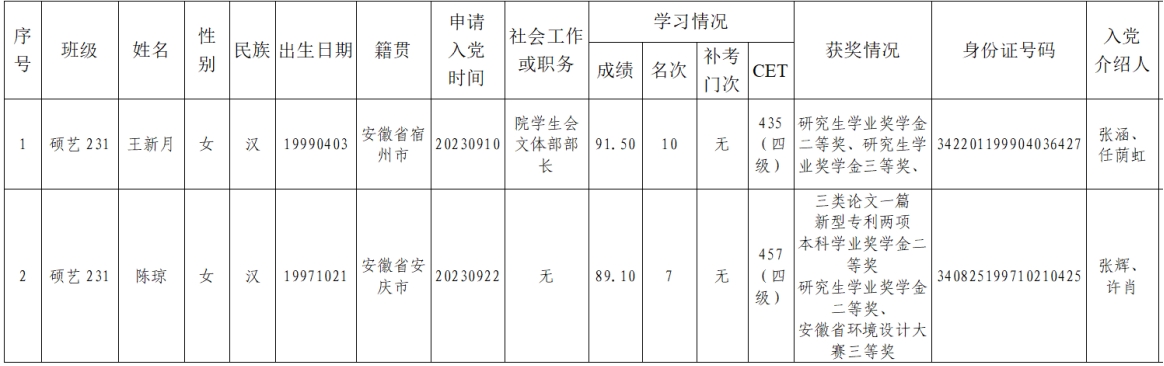 经党支部研究,拟吸收王新月等2名同志为中共预备党员,现将他们的有关情况予以公示,欢迎广大党员、干部、群众通过信函、电话或直接到党支部或上级党组织反映公示对象的思想品质、现实表现、廉洁自律、培养教育等方面情况。